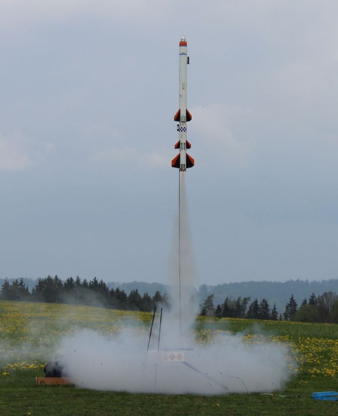 Ukázkové mimosoutěžní lety na raketo-modelářských závodech v Letovicích 28.4. 2018