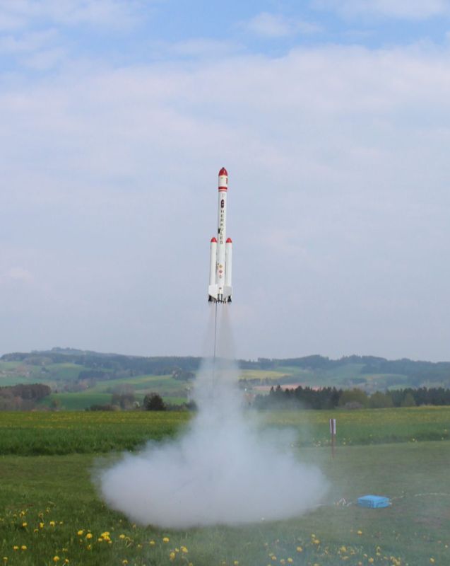 Ukázkové mimosoutěžní lety na raketo-modelářských závodech v Letovicích 28.4. 2018