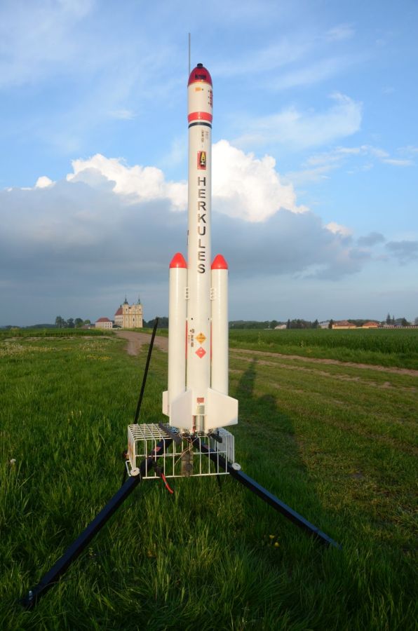 2 stupňová raketa HERKULES - pohon 6 raketových motorků ROS40 (4x + 2x)